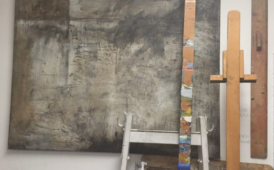 Im letzten Jahr ist eine Tiefdruckpresse ins Atelier gekommen und die Bilder werden mit Druck-Collagen, in denen Formen, Farben und Linie wichtige Elemente darstellen, kombiniert.