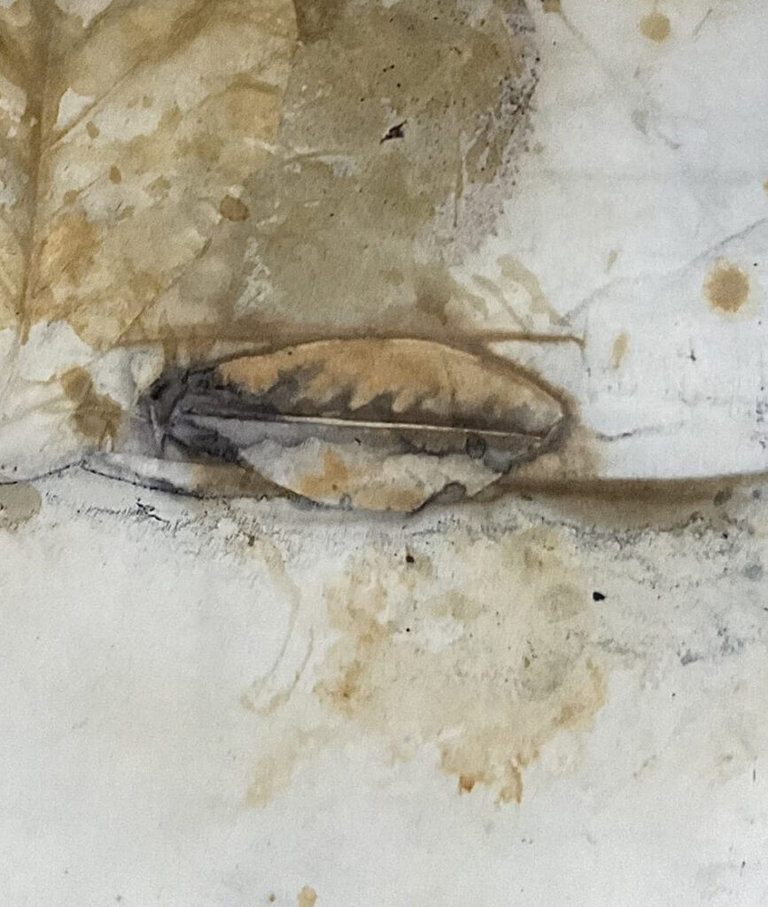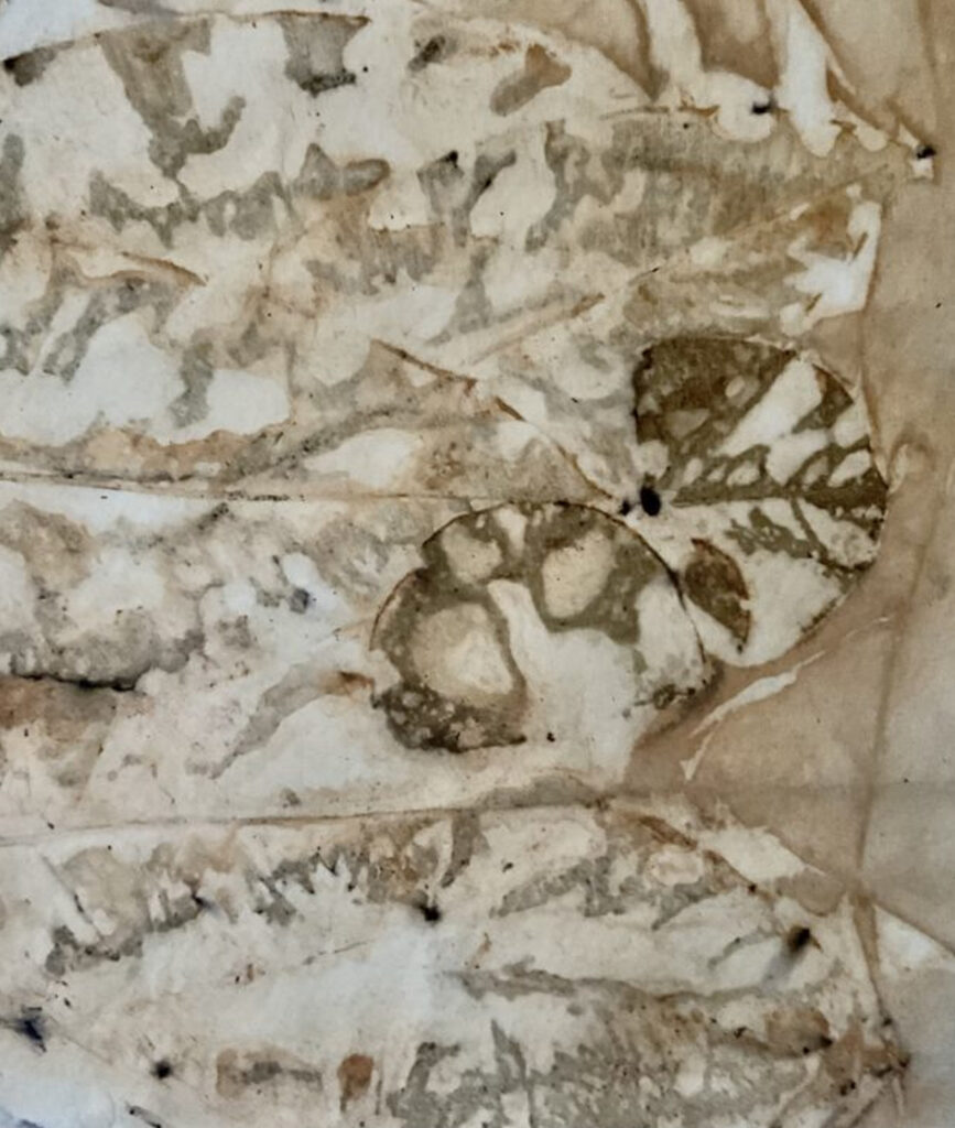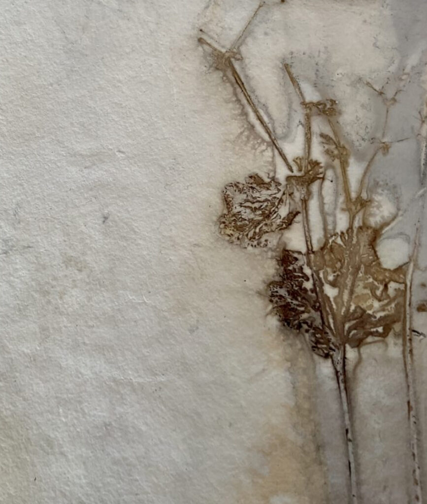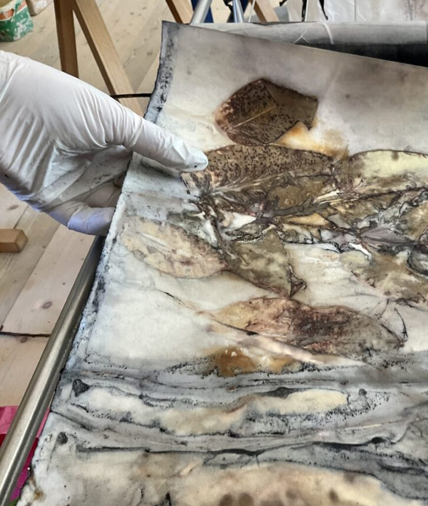 Es war ziemlich spannend zu sehen, wie das Naturmaterial durch Hitze und Dampf seine Farbe auf das Papier abgibt. Nichts ist für mich planbar, alles ist eine Überraschung.