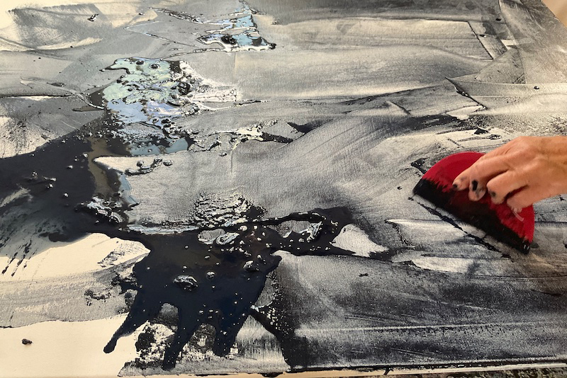 Wir tauchen ein in die meditative Kraft des Schwarz, erleben seine emotionale Tiefe, seine Eleganz und seine subtilen Schattierungen. Durch Schichtungen, Materialexperimente und spielerisches Variieren von Licht und Oberflächen entstehen Bilder, die sowohl Intimität als auch Präsenz ausstrahlen.
